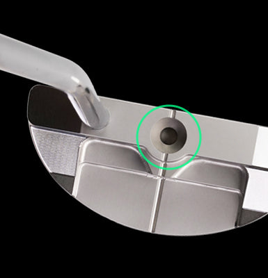 Some conventional putters have linear lines to aid with setup. But you can only assume your eyes and the ball are in alignment with two-dimensional lines. Our putter takes the guesswork out of alignment. It features a unique plate with two openings on the putter head for three-dimensional alignment. All players must do is ensure the 3D plate impact line and cavity hole on the putter head are in a straight line. Itβs simple, but extremely effective for your setup.